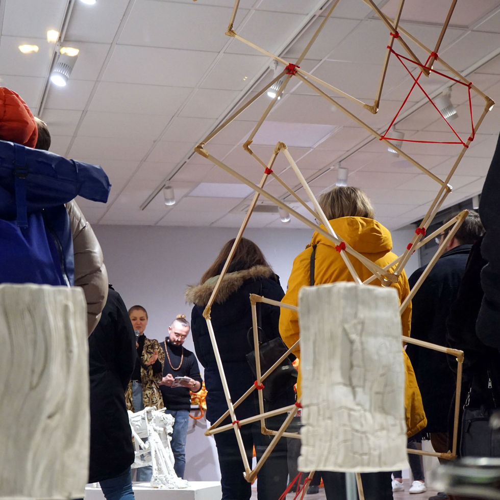 Schüler verschiedener Ausbildungsjahre gemeinsam in einem Atelier arbeiten sollten. Auf diese Weise würden die Jüngeren ein Ziel vor Augen haben, würden sehen, was sie erreichen können, und die Älteren würden nicht hochnäsig, denn sie würden sehen, wie sie auch einmal angefangen haben. Nun ist die skulptur-galerie kein Atelier oder eine Werkstatt in der gearbeitet wird, aber in der Ausstellung Campus – Junge Kunst aus Osnabrück begegnen sich junge Künstler:innen verschiedener Semester und der Titelbegriff CAMPUS macht darauf aufmerksam, dass es sich bei Vivian Blum, Rabea Dolle, Alexej Eisner, Elena Kock, Eva Lause, Zoé Pehlke, Jakob Schöning und Rosanna Voß um Studierende der hiesigen
